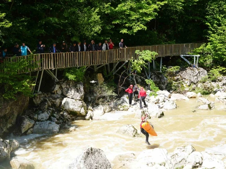 İçerisindeki 3 kilometrelik yürüyüş parkuruyla eşsiz doğal güzelliği sahip, her yıl binlerce turistin ziyaret ettiği Pınarbaşı’ndaki Horma Kanyonunda tatbikat düzenlendi.