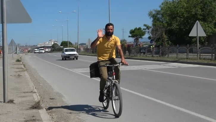Bisiklet gezgini 48 yaşındaki Ömer Töremen, 10. Türkiye turuna başladı. 3 yıl aradan sonra Samsun’un Bafra ilçesine üçüncü kez geldi. Bisiklet yolculuğunda doğada ağaçların altında ve ormanlık alanlarda çadır kurmadan kalan Töremen, doğal ortamlarda bulduğu meyvelerle beslendiğini söyledi.