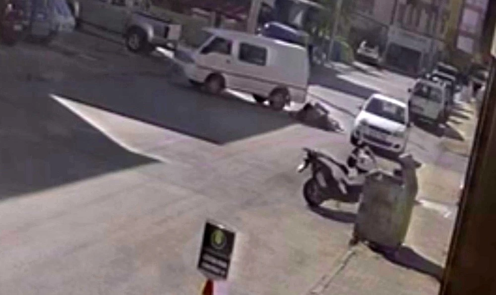 Karaman’da elektrikli bisikletle çay servisi yapan garsonun panelvan aracın altına kalmaktan son anda kurtulması güvenlik kamerasına yansıdı.