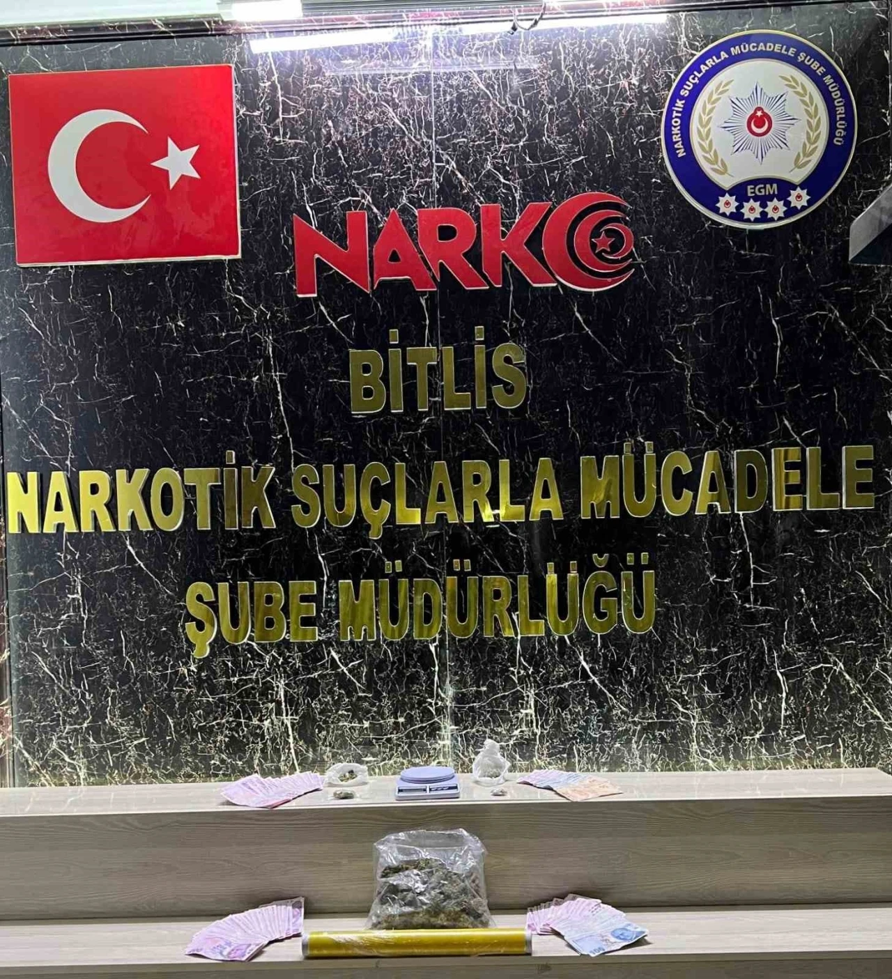 Bitlis Valiliğinden yapılan açıklamada, Emniyet Müdürlüğü Narkotik Suçlarla Mücadele Şube Müdürlüğünce il genelinde uyuşturucu madde satıcılarına yönelik operasyon düzenlediği belirtildi. Açıklamada, “Narkotik Suçlarla Mücadele Şube Müdürlüğümüzce ilimiz genelinde uyuşturucu madde satıcılarına yönelik yapılan çalışmalar neticesinde; 2 şüpheli yakalanmış, yakalanan şüpheliler çıkarıldıkları adli mercilerce tutuklanarak cezaevine gönderilmiştir. Bahse konu şüpheli şahısların ikametlerinde yapılan aramalar neticesinde; 200 gram esrar maddesi, satışa hazır vaziyette 4 parça halinde 20 gram esrar maddesi, 1 adet hassas terazi, uyuşturucu madde satışından elde edilen bir miktar para ele geçirilmiştir. Uyuşturucu madde imalatı, kaçakçılığı ve kullanımına karşı yürütülen kararlı mücadelemiz devam edecektir” denildi.