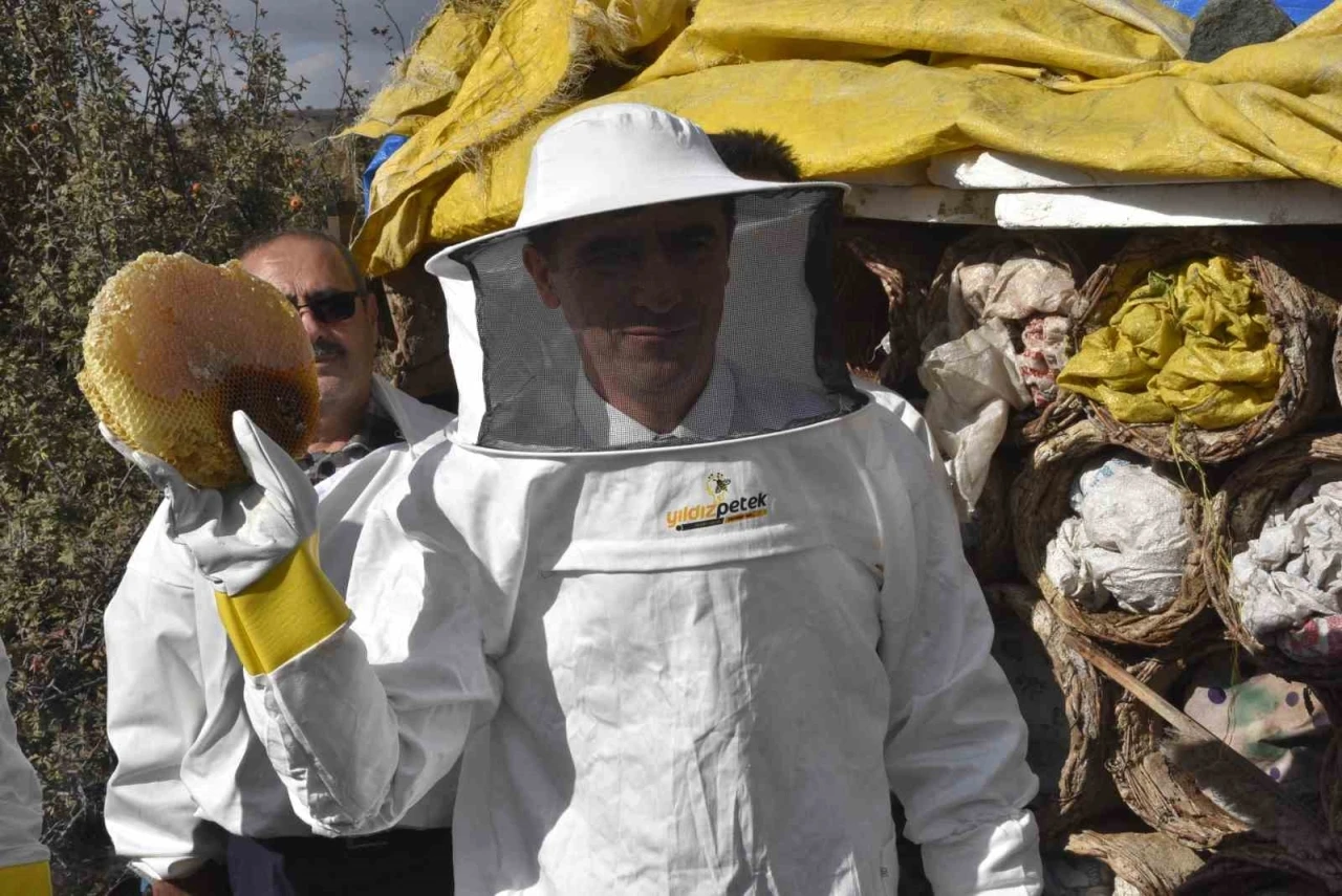 Bitlis Valisi Ahmet Karakaya, dünyanın en kaliteli balları arasında gösterilen Bitlis karakovan balının hasadına katıldı.
