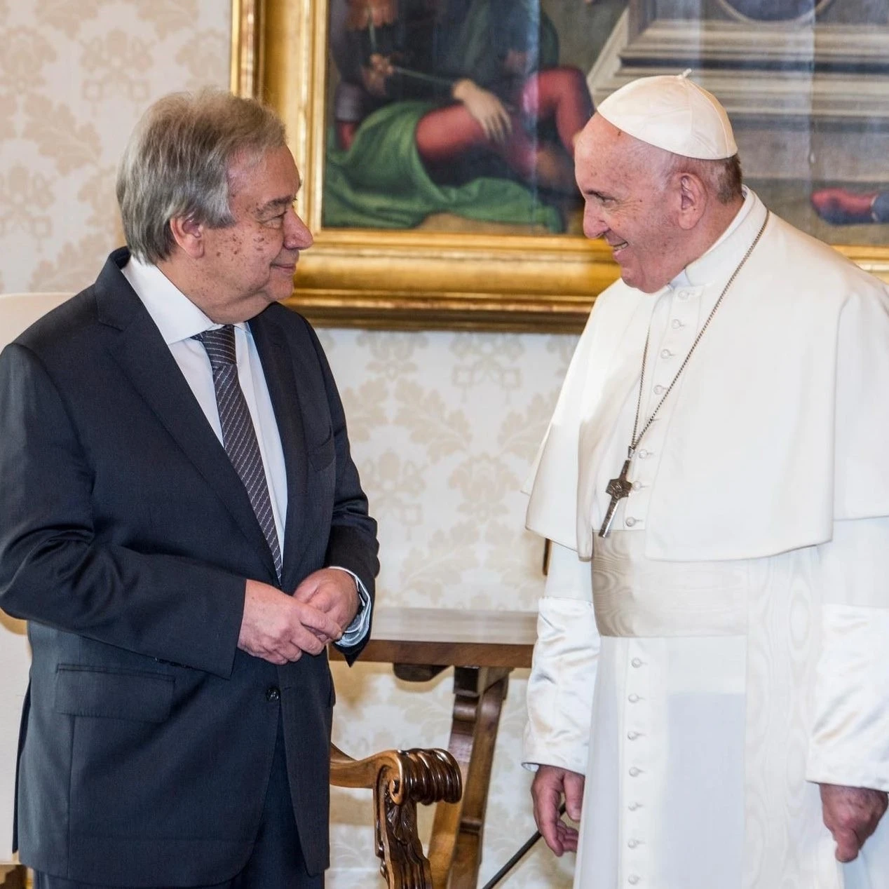 BM Genel Sekreteri Antonio Guterres, Katoliklerin ruhani lideri Papa Francis’in 88 yaşında hayatını kaybetmesinin ardından bir taziye mesajı yayımladı. Guterres, taziye mesajında Papa ile birlikte çekilmiş bir fotoğrafına da yer vererek, duyduğu derin üzüntüyü dile getirdi. Guterres, "Bir umut, tevazu ve insanlık elçisi olan Papa Francis’in vefatının yasını tutan dünyaya katılıyorum. Papa Francis barış, insan onuru ve sosyal adalet için yüce bir sesti. Katoliklere ve dünyanın dört bir yanında onun olağanüstü yaşamı ve örneğinden ilham alan herkese en derin taziyelerimi sunuyorum" dedi.