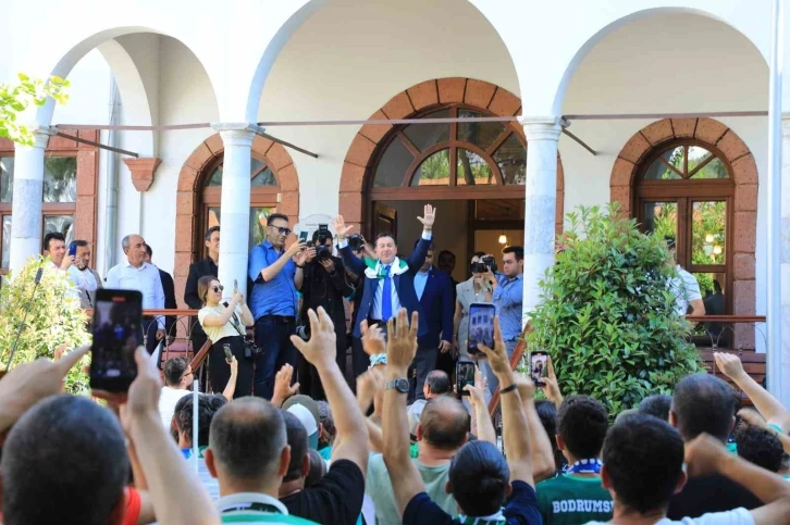 Süper Lig’e yükselme başarısı gösteren Bodrumspor’un taraftar grubu, Adana’dan maç dönüşünde Muğla Büyükşehir Belediye Başkanı Ahmet Aras’ı ziyaret etti. Belediye binası önünde taraftarları karşılayan Başkan Aras, "Şampiyon Bodrumspor" tezahüratıyla coşkuyu artırdı.