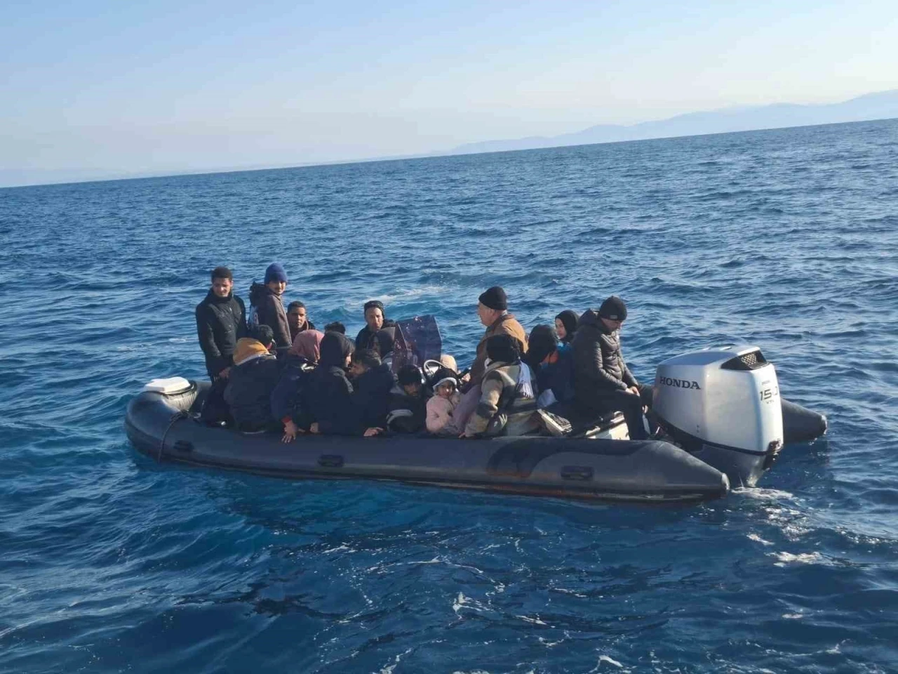 Bodrum açıklarında lastik bot içerisinde bir grup düzensiz göçmen olduğu bilgisinin alınması üzerine Sahil Güvenlik Gemisi (TCSG-94) ve Sahil Güvenlik Botu (KB-110) bölgeye hareket etti. Ekipler tarafından hareketli fiber karinalı lastik bot durdurularak içerisindeki 11’i çocuk 26 düzensiz göçmen yakalandı. Teknede bulunan 1 kişi de göçmen kaçakçılığı yaptığı şüphesiyle gözaltına alındı.