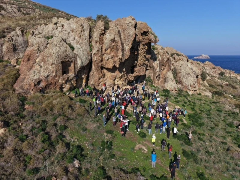 Küdür Yarımadası’nın tarihsel geçmiÅŸi, jeolojik yapısı, florası ve faunasının öneminin aktarıldığı etkinlik; Küdür Alacain kaya mezarlarından baÅŸlayarak, bölgenin kırsal kimliÄŸini ve antik çaÄŸ dış ticaretini yansıtan tarım terasları, iÅŸlikler ve çiftlik evlerinin anlatımıyla devam etti. Yürüyüş, Piyamlık Limanı’na kadar sürdü. İsmini piyam bitkisinden alan bölgede, piyam bitkileri de katılımcılara tanıtıldı. Etkinlikte yer alan Küdür Platformu Sözcüsü Umay KarabaÅŸ da katılımcılara bölgenin biyolojik faunası hakkında bilgilendirme yaptı.Â