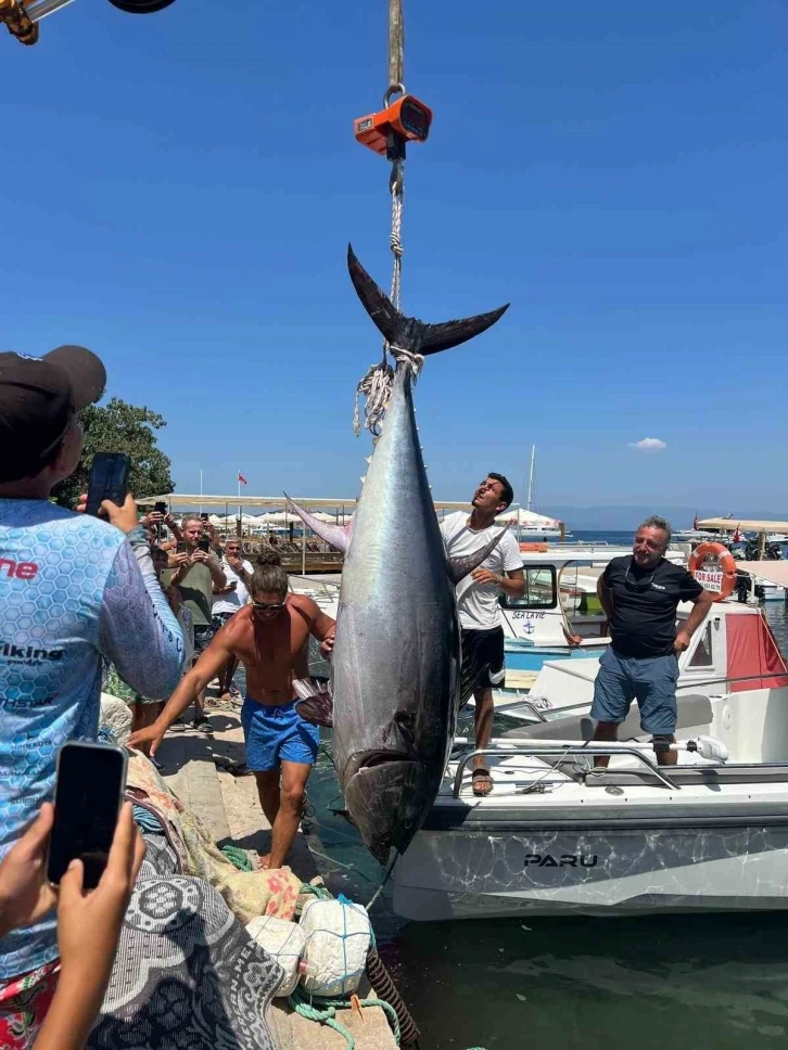 Bodrum’da yaşayan Kayahan Eser, Metincan Alın, Emirhan Tahir ve Deniz Aras Korkmaz isimli 4 amatör balıkçı sabah saat 06.00 sıralarında Gölköy’den denize açıldı. Didim açıklarında avlanan balıkların oltasına sabah 08.00 sıralarında büyük bir balık takıldı. 4 amatör balıkçı, dev balığı yukarı çekmek için çaba harcadı fakat başarılı olamadı. Dev balık, amatör balıkçıların 7 metrelik teknesini 5 saatte Didim açıklarından Türkbükü açıklarına kadar sürükledi.