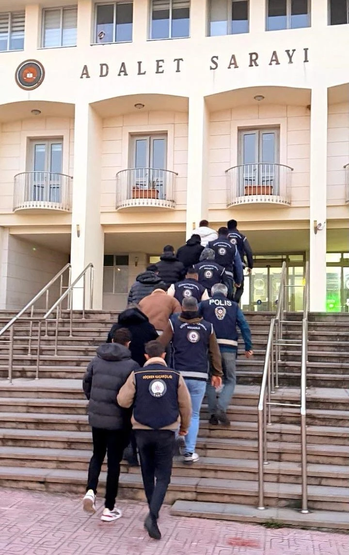Göçmen Kaçakçılığıyla Mücadele ve Hudut Kapıları Şube Müdürlüğünce yürütülen teknik takip çalışmaları kapsamında gerçekleştirilen eş zamanlı operasyonda, göçmen kaçakçılığı yaptığı tespit edilen 7 şüpheli yakalandı. Şüphelilerden 4’ü sevk edildikleri adli makamlarca adli kontrol şartıyla serbest bırakılırken, organizatör konumunda bulunan 3 şüpheli tutuklanarak cezaevine gönderildi.