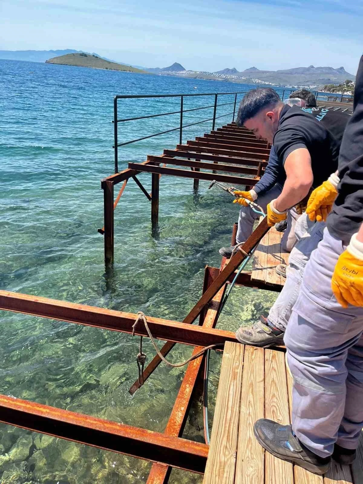 Bodrum Kaymakamlığı ve Bodrum Belediyesi'nin koordinasyonuyla yürütülen kaçak iskelelerin tespiti ve yıkım çalışmaları, ilçenin farklı noktalarında aralıksız devam ediyor.