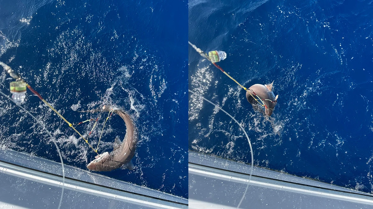 Bugün sabah saatlerinde Bodrum Orak Adası çevresinde olta balıkçılığı yapan iki kişi 2 m. boyundaki köpek balığını yakaladı. Daha sonra tekrar denize saldıkları köpek balığı için tehlikeli değildi. Oltayı ağzından çıkartabildik. Heralde çok fazla jaws filimleri izlediğimizden olsa gerek biraz çekinmedik desek yalan olur . “ dediler .