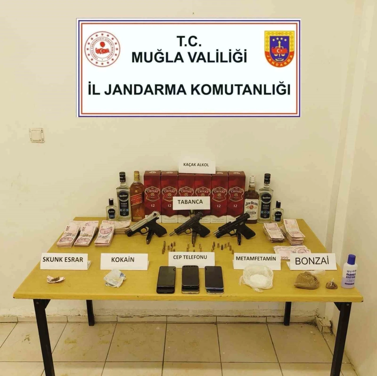 Muğla’nın Bodrum ilçesinde, jandarma ekipleri tarafından düzenlenen operasyonda uyuşturucu madde, ruhsatsız silah ve yüklü miktarda nakit para ele geçirildi. Olayla ilgili gözaltına alınan 3 şüpheliden 2’si tutuklandı.