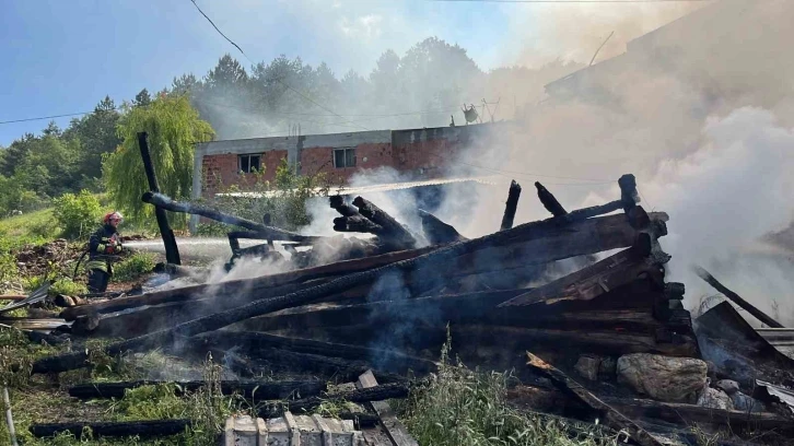 Bolu’da çıkan yangında 2 samanlık ve odunluk alev alev yanarak küle döndü. 3 ahşap yapıyı küle çeviren yangın havadan da görüntülendi.