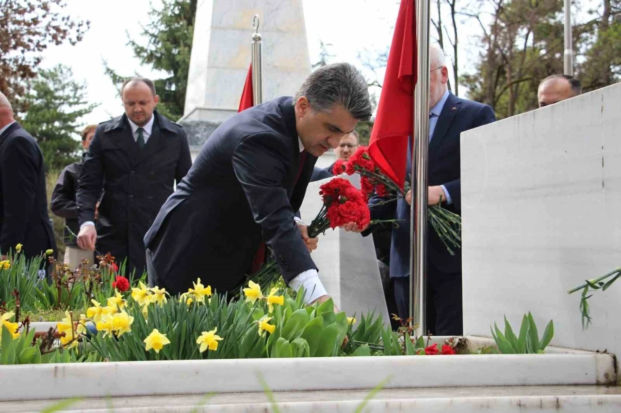 Şehitlikteki tören Atatürk Anıtı’na çelenk sunumuyla başladı. Ardından şehitler için askeri birlik tarafından saygı atışı yapıldı.