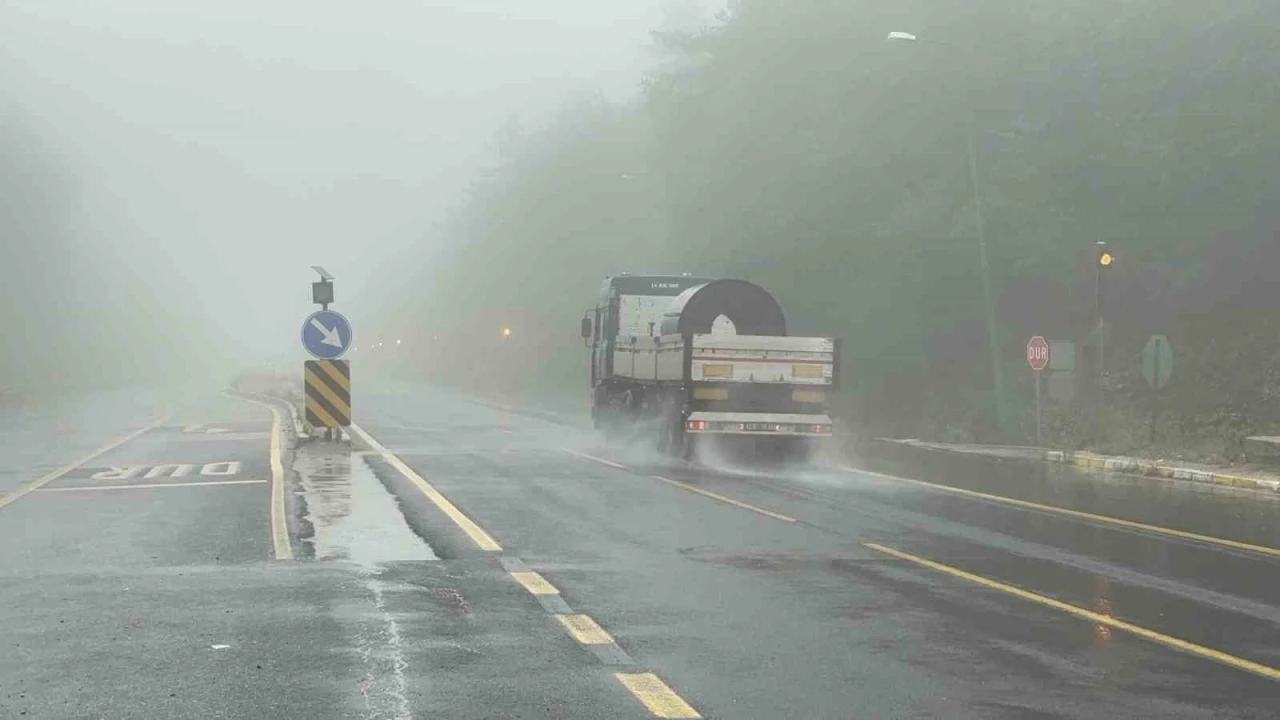 Türkiye’nin en önemli geçiş güzergahlarından biri olan D-100 kara yolunun Bolu Dağı geçişinde yoğun sis ve sağanak sebebiyle görüş mesafesi 20 metreye kadar düştü.