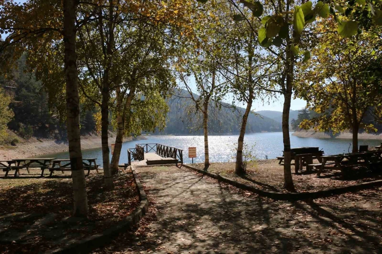 Türkiye’nin cennet şehirlerinden biri olan Bolu’da sonbahar güzelliği yaşanıyor. Sonbaharın güzelliğini yansıttığı Göynük ilçesinde bulunan Sünnet Gölü, ziyaretçilerini ağırlamaya devam ediyor. Etrafı ağaçlarla çevrili olan göl, doğal güzelliklerinin yanı sıra kuraklıkla mücadele ediyor. Yaklaşık 5 metre kıyılardan çekilen göl, Bolu tarihinin en büyük orman yangınında önemli rol oynamıştı. 3 gün süren yangında helikopter 775 ton su alarak 289 sorti yapmıştı. “Yaklaşık 5 metre geriye çekildi”