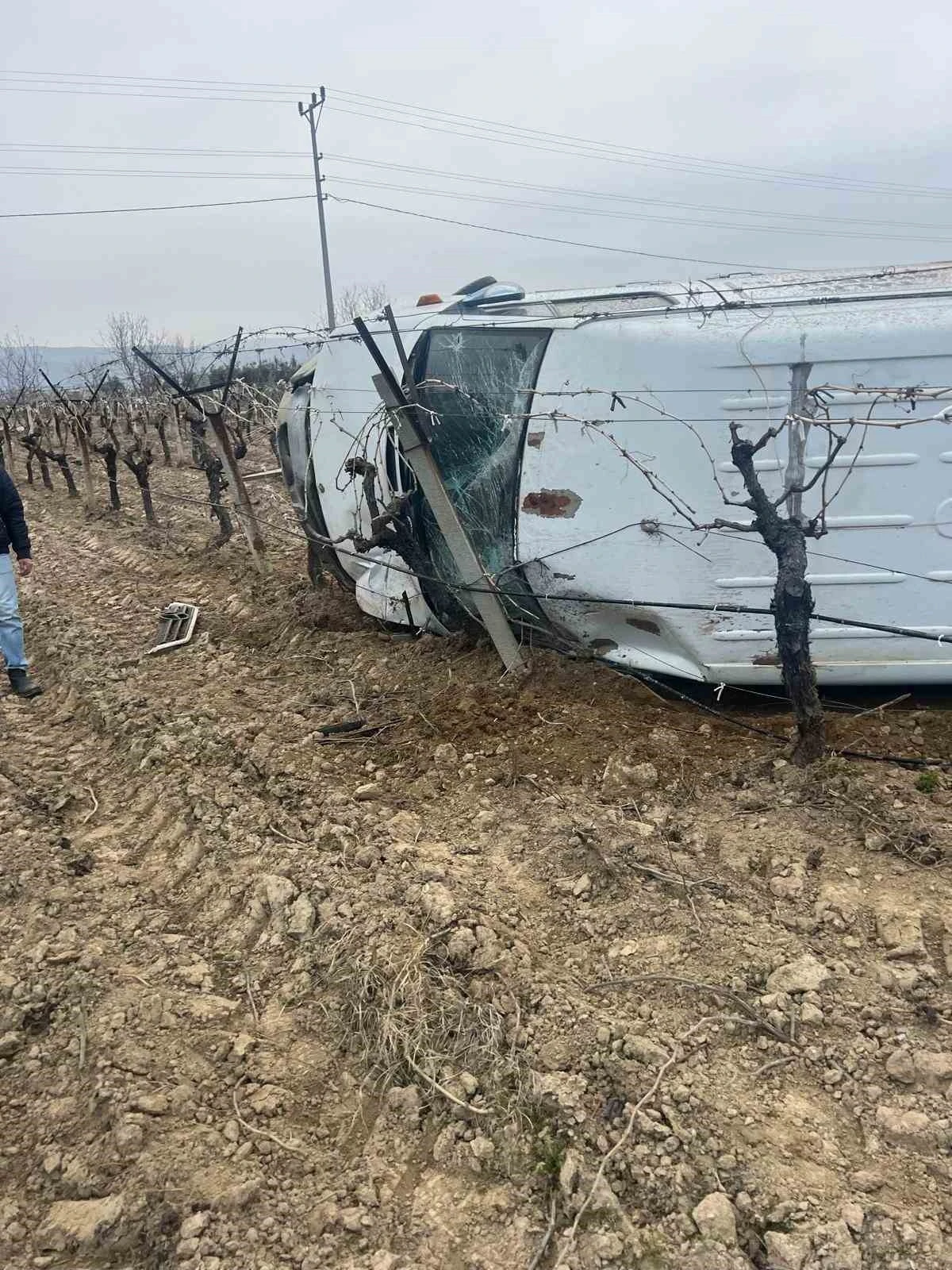 Denizli’de geçtiğimiz günlerde halter şampiyonasına giden öğrencilerin kaza yaptığı yolda tekrar kaza yaşandı. Minibüste kimsenin olmaması faciayı önlerken, üzüm bağlarının arasına devrilen araç sürücüsü yaralı kurtarıldı. Kaza, Buldan ilçesi Manisa - Denizli karayolu üzerinde meydana geldi. Edinilen bilgilere göre sürücü ismi henüz öğrenilemeyen 20 AGH 312 plakalı minibüs sürücüsünün direksiyon hakimiyetini kaybetmesi üzerine üzüm tarlasına uçtu. Çevredeki vatandaşların ihbarı üzerine bölgeye jandarma, sağlık ve itfaiye ekipleri sevk edildi. İtfaiye ekipleri araçta sıkışan sürücüyü kurtararak sağlık ekiplerine teslim etti. Kazada minibüsün boş olması faciayı önlerken, yaralı sürücü ise ambulansla hastaneye sevk edildi. Ayrıca kazanın yaşandığı yolda geçtiğimiz günlerde Genç Kızlar Halter Şampiyonasına katılmak için İzmir’den yola çıkan öğrencileri taşıyan servis aracı da kaza yapmış, 2 kişi hayatını kaybetmişti. Kazayla ilgili soruşturma başlatıldı.