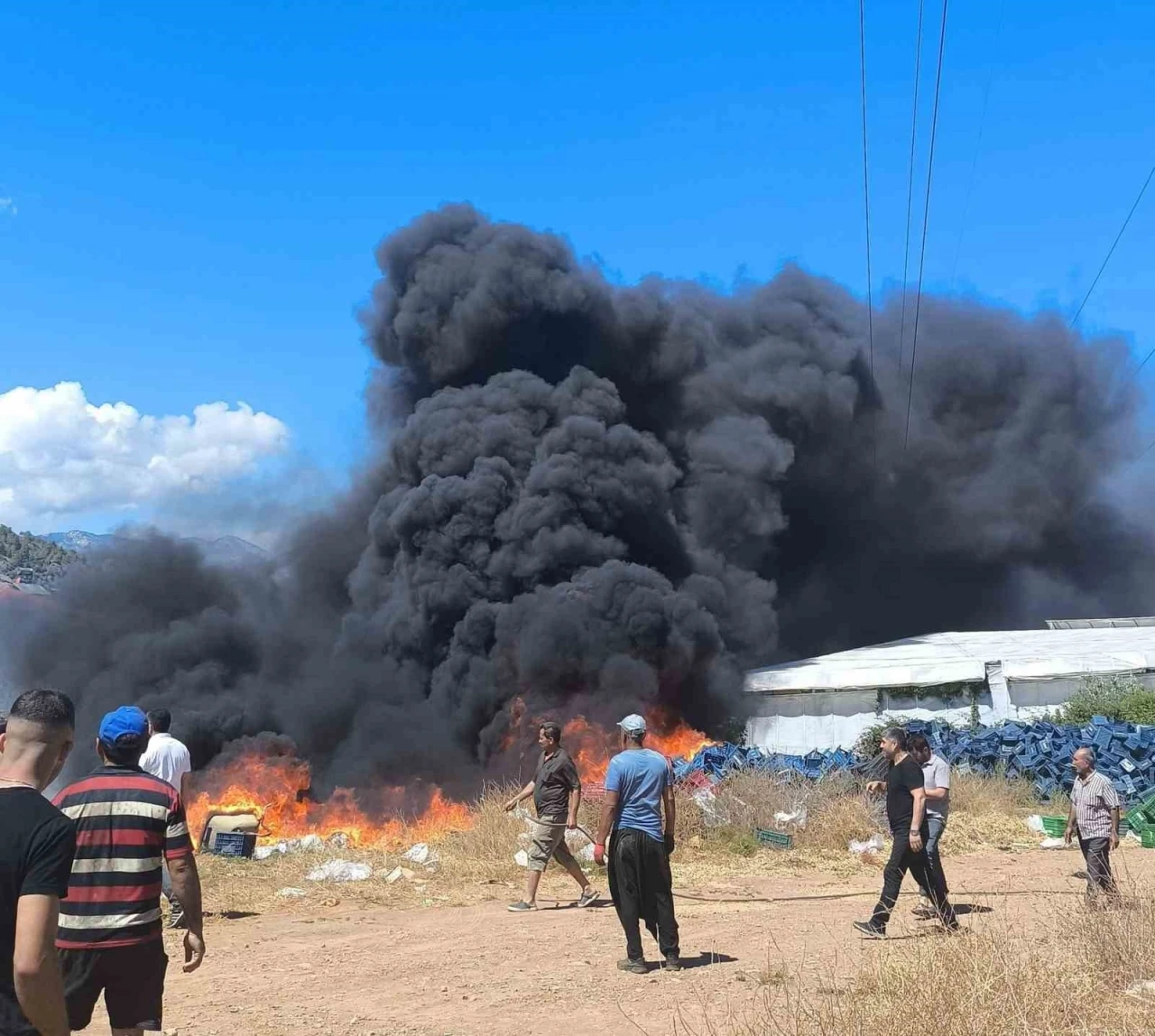 Mersin’in Bozyazı ilçesine bağlı Tekmen Mahallesi hal bölgesinde çıkan yangın korkuya neden oldu.