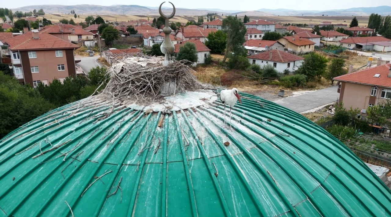 Çankırı’nın Orta ilçesinde bulunan bir caminin kubbesi, yıllardır leyleklere ev sahipliği yapıyor.