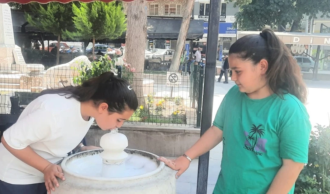 Afyonkarahisar’ın Dinar ilçesinde sokaklardaki çeşmelerden akan buz gibi doğal kaynak suyu sıcak yaz günlerinde vatandaşları ferahlatırken, kaynak suyunun 100 yılı aşkındır ilçeden geçtiği belirtildi.