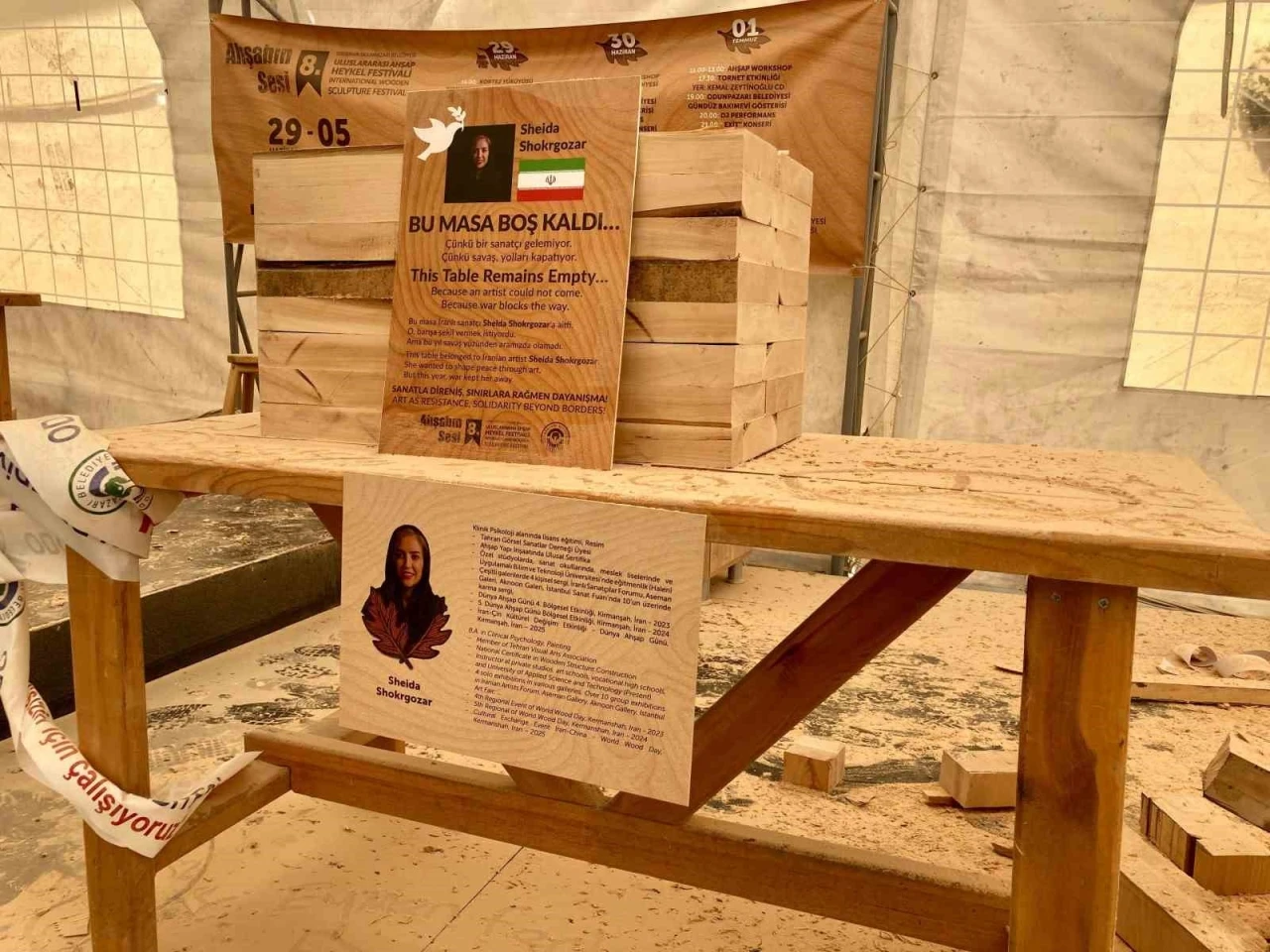 Sergi alanında sanatçıların rahat çalışabilmeleri için oluşturulan özel alanda bulunan boş bir masa vatandaşların dikkatini çekti. Festivale İran’dan katılması beklenen sanatçı Sheida Shokrgozar, İsrail-İran savaşı nedeniyle sergiye katılamadı. Bu duruma tepki olarak çalışma alanında Sheida Shokrgozar’a ayrılan masa boş bırakıldı. Masanın üzerine sadece sanatçının fotoğrafı ve festivale neden katılamadığını Türkçe ve İngilizce olarak anlatan, "Bu masa İranlı sanatçı Sheida Shokrgozar’a aitti. O barışa şekil vermek istiyordu. Ama bu yıl savaş yüzünden aramızda olamadı" şeklindeki açıklama yazıldı.