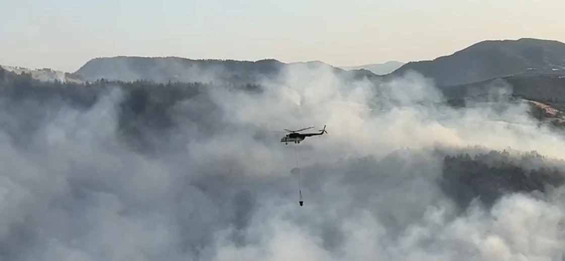 Bursa’da başlayıp Balıkesir’in Dursunbey ilçesine sıçrayan orman yangınına müdahale sürüyor. Balıkesir Valisi İsmail Ustaoğlu ve Dursunbey Belediye Başkanı Ramazan Bahçavan, tedbiren boşaltılan Bayıryüzügüney kırsal mahallesi yakınlarına gelerek çalışmaları yerinde izledi. Vali Ustaoğlu, yangının tarım arazisinde çıktığını ve olayla ilgili 2 kişinin gözaltına alındığını söyledi.