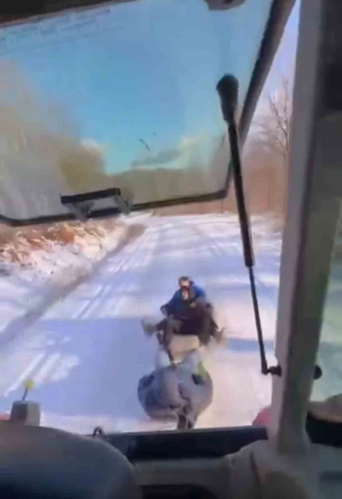 Bursa’da etkili olan kar yağışını fırsata çeviren çocuklar, traktörün arkasına bağlanan lastiklerle kayarak karın keyfini doyasıya çıkardı.
