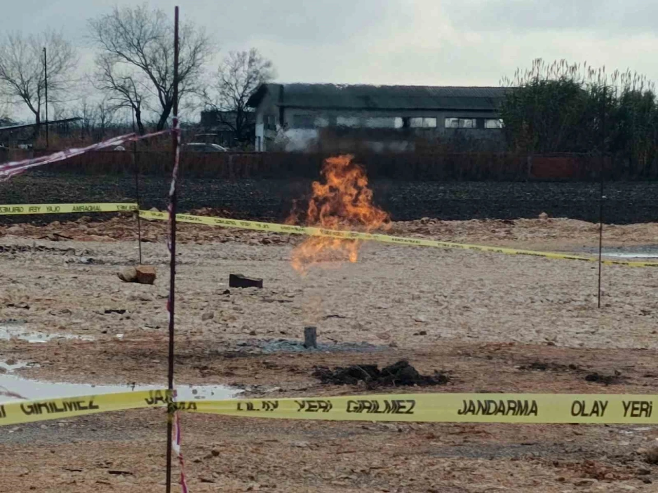 Doğal gaz bulan işçi Emrah Us ise, “Şantiye alanının depo kısmını ayarlamak için zemin etüdü yapıyordum. Yaklaşık 20 metre kazdıktan sonra suyla karışık bir gazın çıktığını fark ettim. Önce su sifon yapıyor sandım ama yoğunlaşınca kağıt attım. Yanmaya başlayınca yetkililere haber verdim. Burada inceleme yaptılar yüzde 80 doğal gaz olduğunu tespit ettiler” diye konuştu.