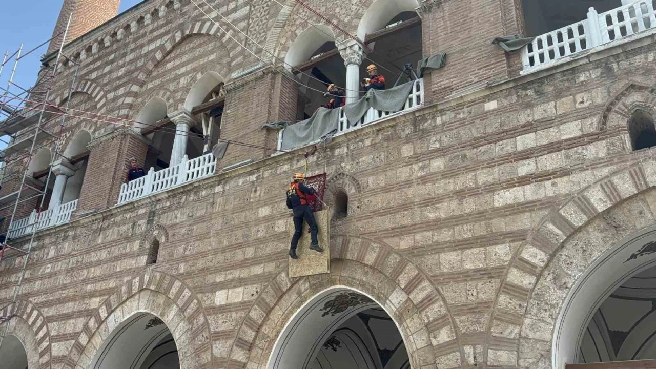 Bursa’da ’6 Şubat Depremlerinin Kültürel Miras Üzerindeki Etkilerinin Değerlendirilmesi’ çalıştayı çerçevesince I. Murad Hüdavendigar Külliyesi’nde gerçekleştirilen deprem tatbikatı gerçekleştirildi. Tatbikatta, afetzedelere müdahalenin yanı sıra, zarar gören taşınabilir kültür varlıklarının tahliyesi de gerçekleşti.