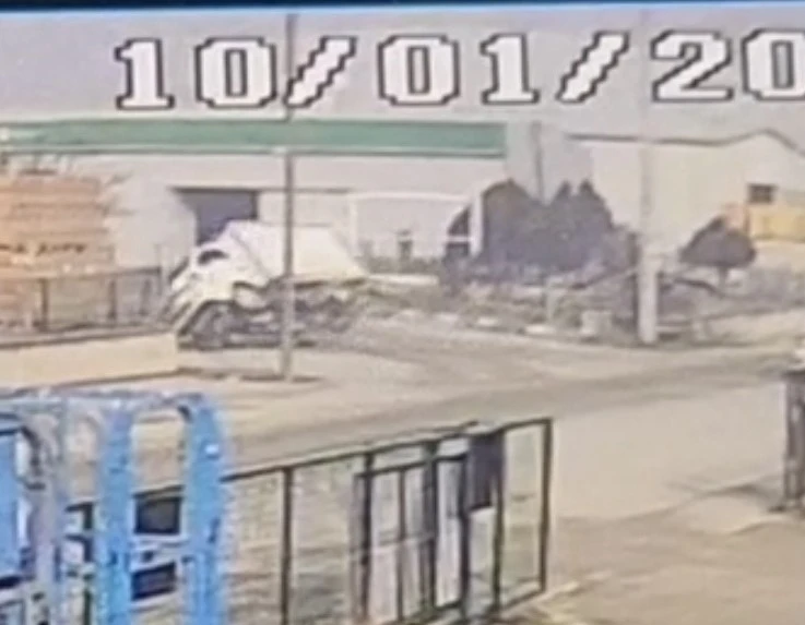 Kaza anı bir işyerinin güvenlik kamerasına saniye saniye yansıdı.
