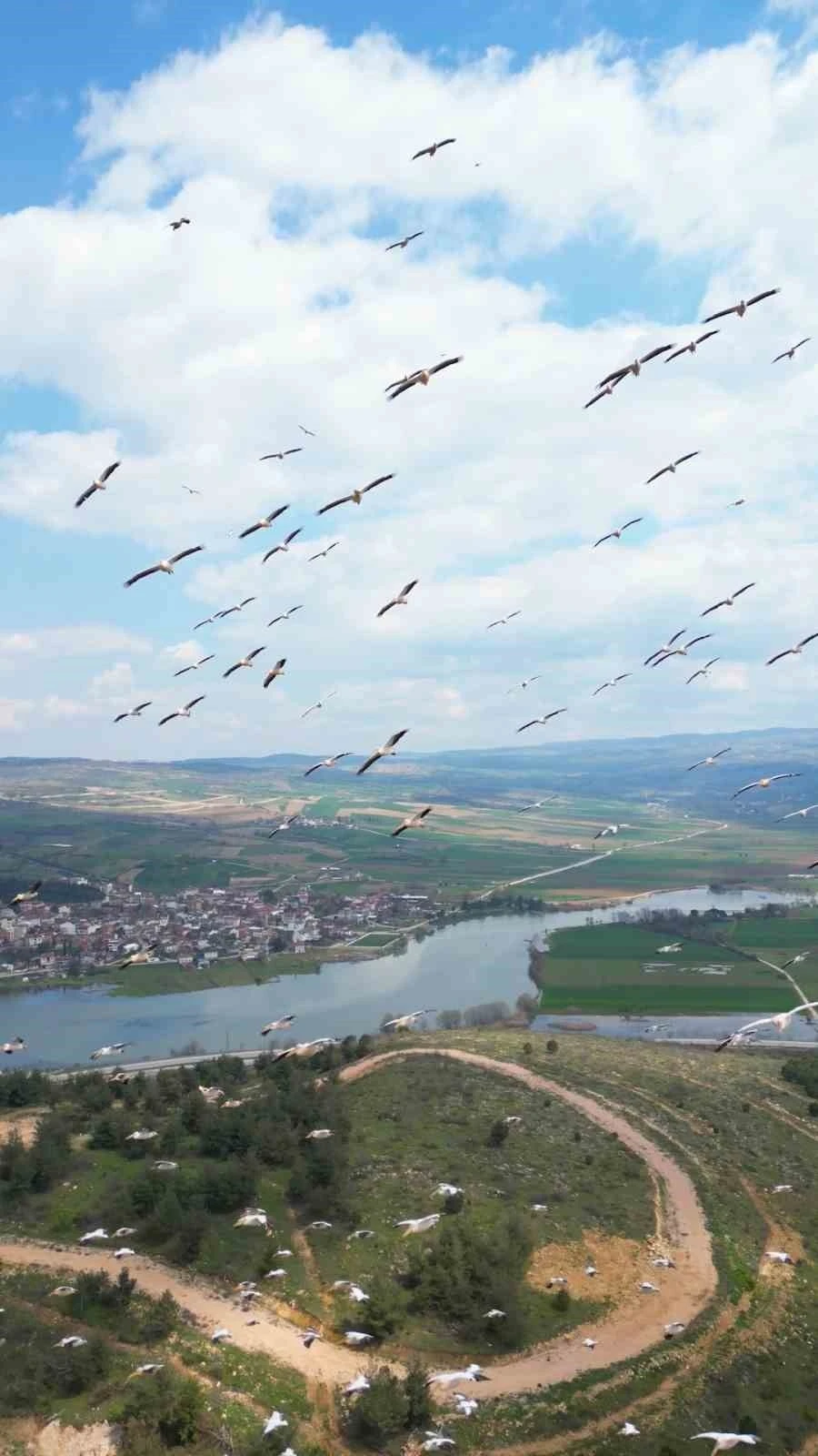 Her yıl olduğu gibi bu yıl da barajda mola veren pelikan sürüsü, doğa severler ve fotoğraf tutkunları için eşsiz bir görsel şölen sundu. Pelikanların Boğazköy Barajı’nda mola vermesi görenlerin dikkatini çekti. Pelikan sürüsünün gök yüzünde süzüldüğü anlar dronla görüntülendi.