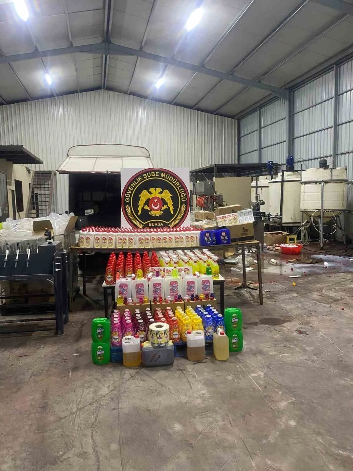 Bursa’da zehirli madde imalatı ve ticareti ile kaçak üretime yönelik düzenlenen operasyonda, piyasa değeri yüksek çok sayıda sahte temizlik ürünü ve üretim ekipmanı ele geçirildi. Operasyonda 6 şüpheli gözaltına alındı.