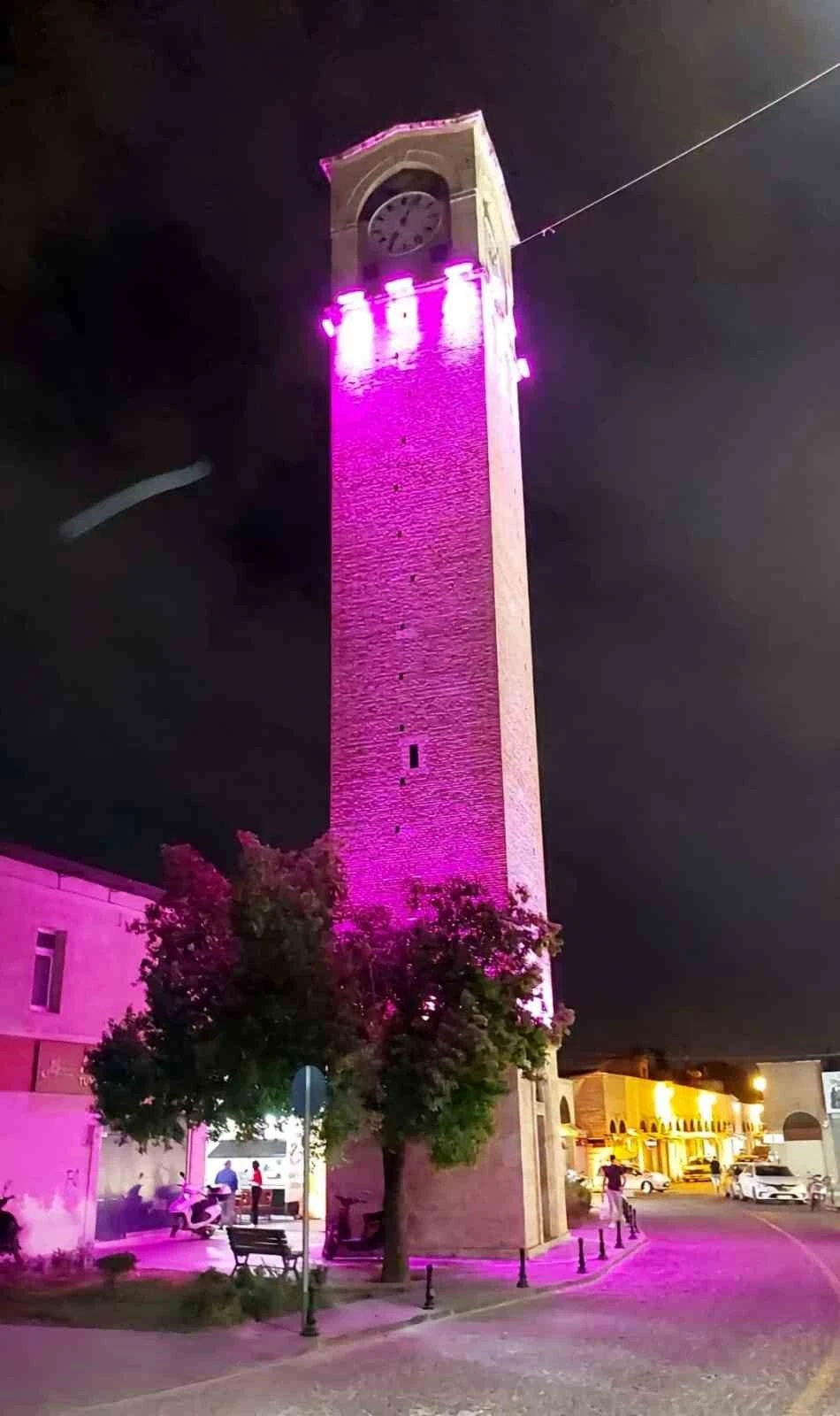 Bu kapsamda Adana’daki Büyük Saat Kulesi, akşam saatlerinde pembeye büründü.