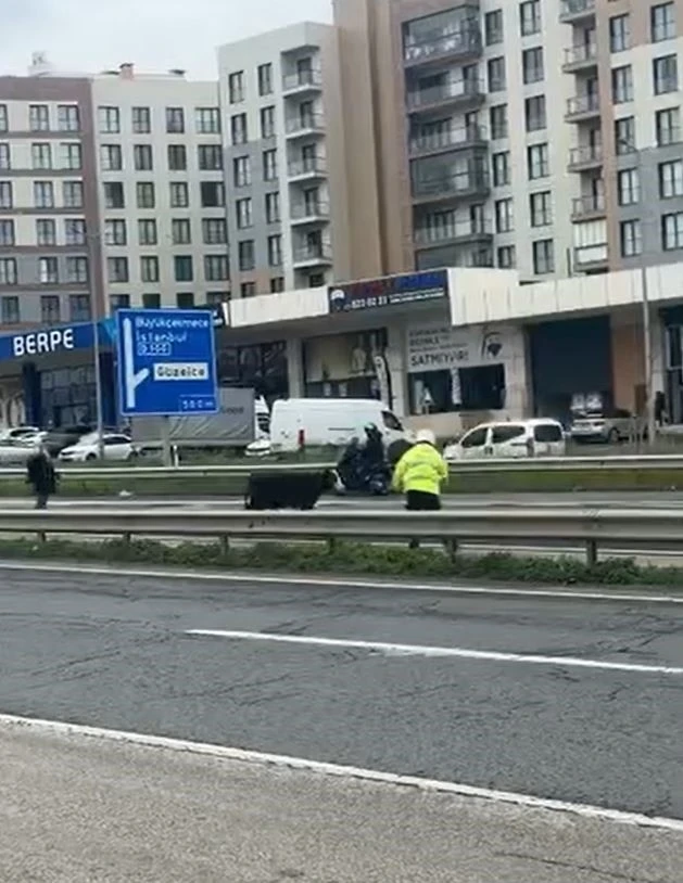 Olay dün öğlen saatlerinde E-5 Büyükçekmece Güzelce mevkiinde yaşandı. Sahibi henüz bilinmeyen bir dana E-5’e atladı. Uzun süre trafikte başı boş dolaşan danayı gören vatandaşlar polise haber verdi. Kısa sürede olay yerine gelen polis vatandaşların desteğiyle uzun süre danayı yol dışına çıkarmak için mücadele etti. Dana kovalanarak yol kenarına çıkarıldı. Trafik ise normale döndü. Yaşanan anlar ise vatandaşlar tarafından cep telefonu kamerasıyla kaydedildi.