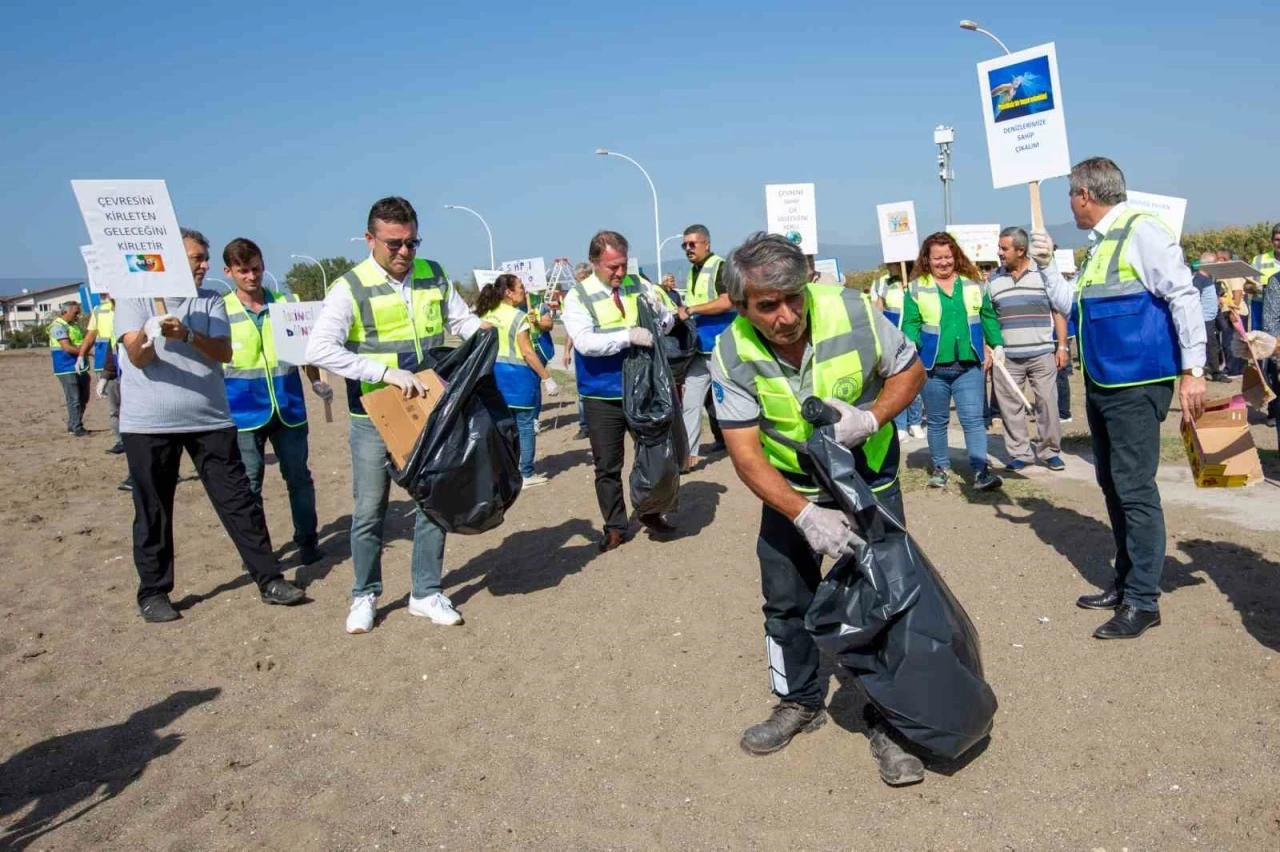Bursa Büyükşehir Belediyesi personeli, çevre temizliğine dikkat çekmek amacıyla Gemlik ilçesindeki Kumsaz Plajı’nda sahil temizliği yaptı.