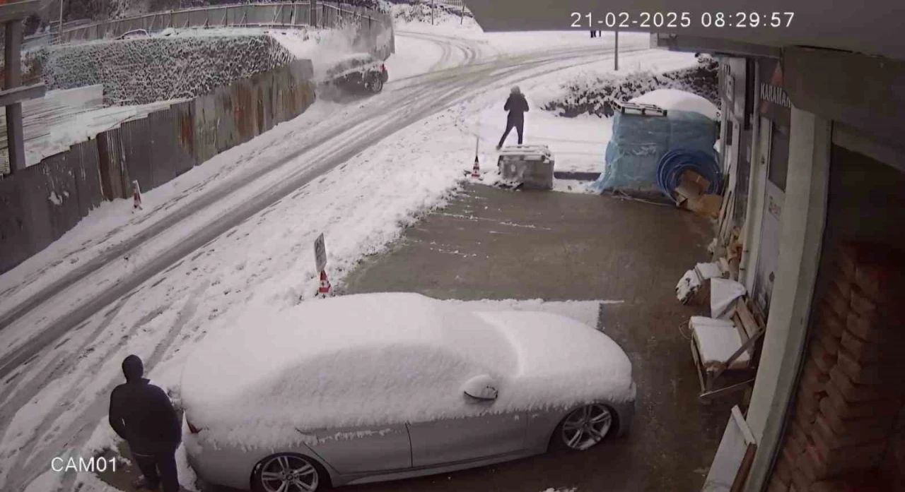 Trabzon’da etkili olan kar yağışı sonrası buzlanan yolda kayan bir otomobil, inşaat halindeki binanın zeminine düştü. Otomobil sürücüsünün yaralandığı kaza güvenlik kamerasına yansıdı.