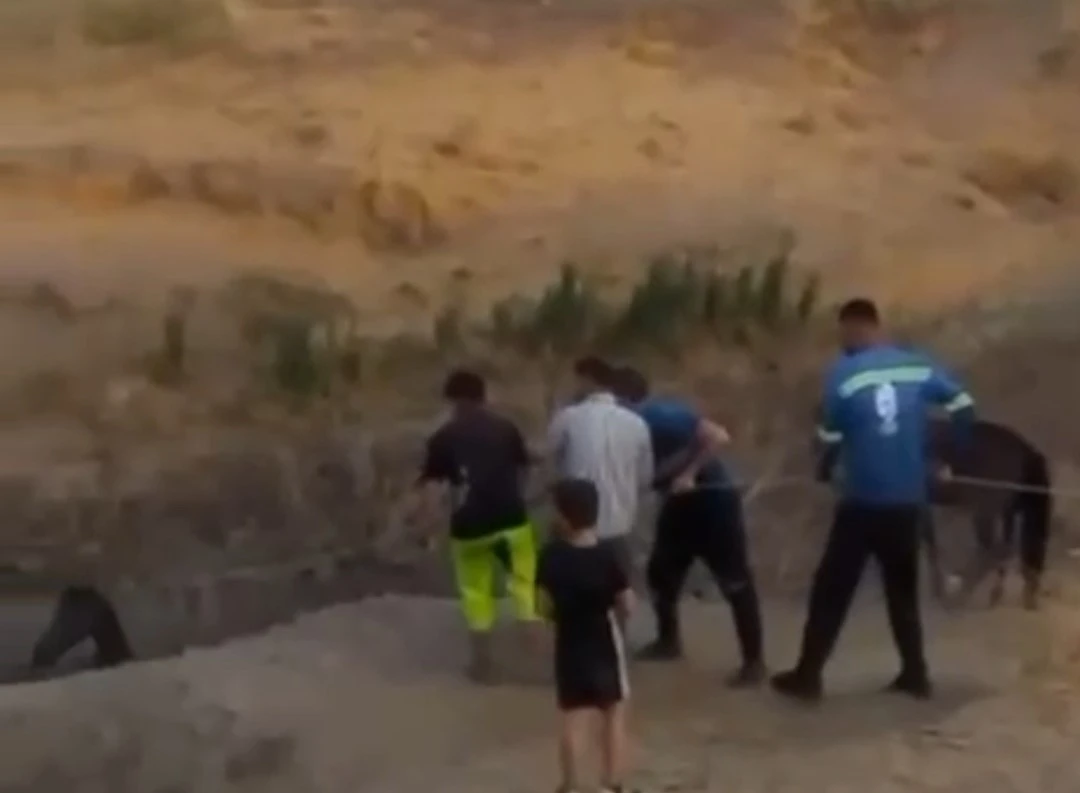 Siirt’in Kurtalan ilçesinde çamura saplanan bir at, köylülerin kendi imkanlarıyla kurtarıldı.