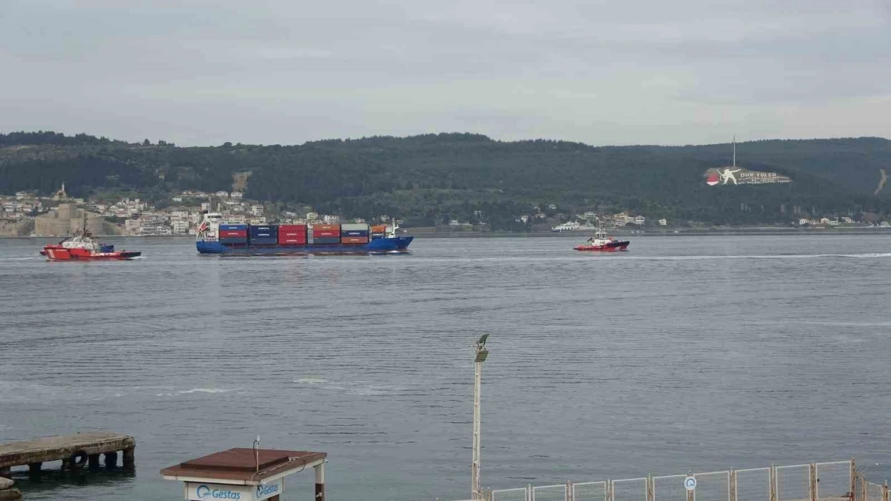 Çanakkale Boğazı’nda 6 gün önce Yeniköy açıklarında makine arızası yapan Belize bayraklı 100 metre uzunluğundaki ‘Greta’ isimli konteyner gemisi, römorkör tarafından yedeklenerek, Çanakkale Boğazı’ndan geçti.