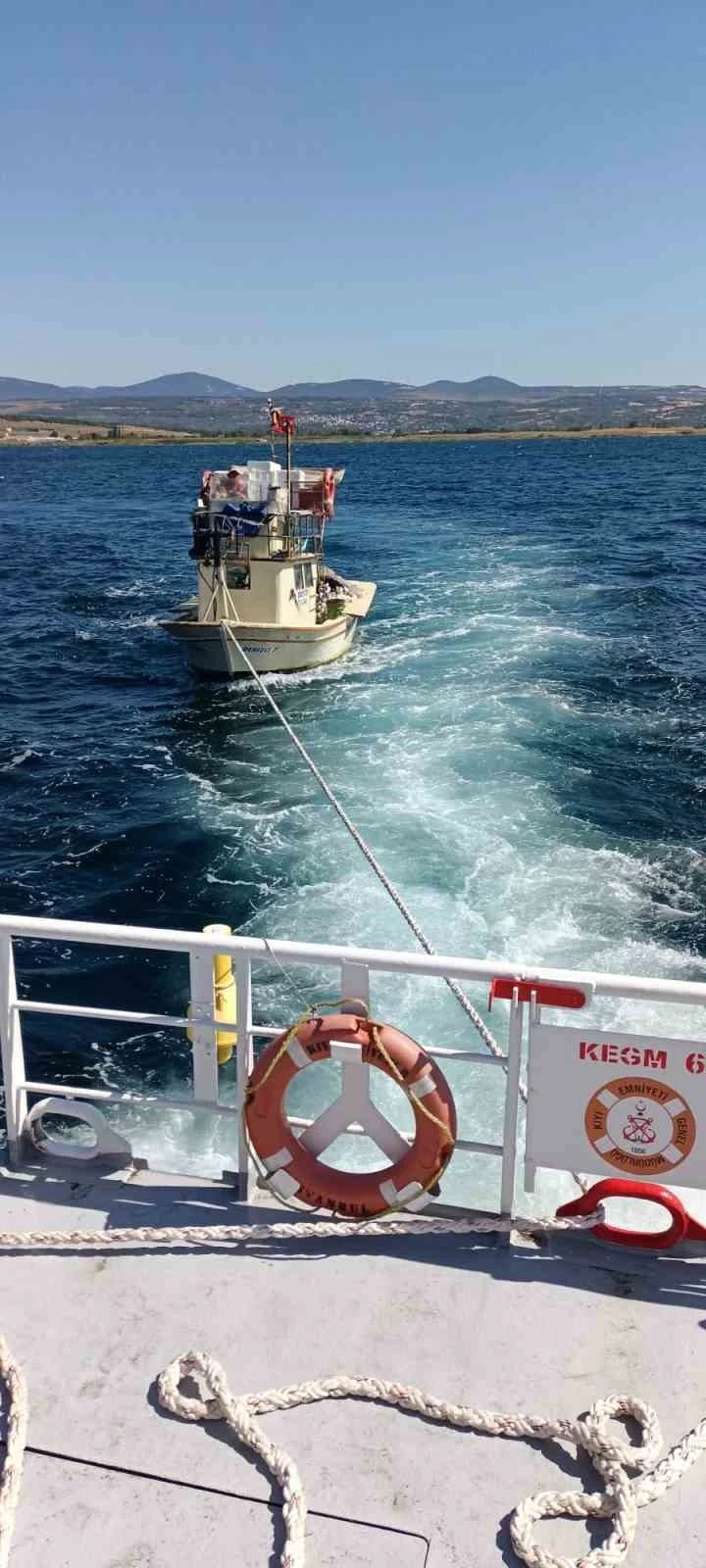 Çanakkale Boğazı’nda makine arızası yaparak sürüklenen tekne, Kıyı Emniyeti Genel Müdürlüğüne ait bot ile kurtarılarak Lapseki Balıkçı Barınağı’na yanaştırıldı.
