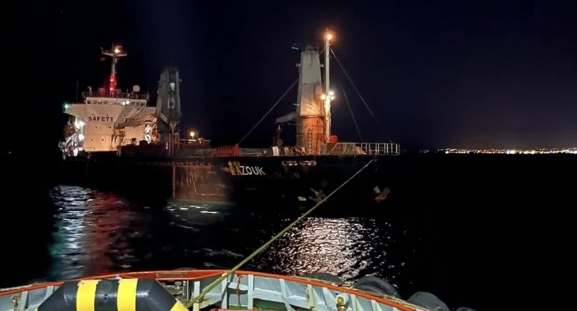 Kuru yük gemisi, kılavuz kaptan ve römorkör refakatinde Karanlık Liman demir sahasına götürülerek demirletildi.