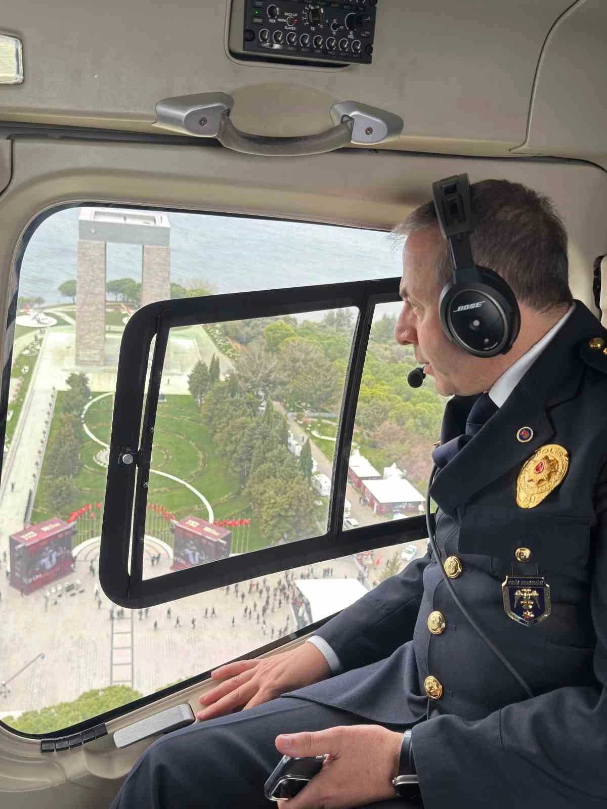 Çanakkale İl Emniyet Müdürü Kenan Kurt, Çanakkale Deniz Zaferi’nin 110. kutlamaları için alınan tedbirleri havadan inceledi.