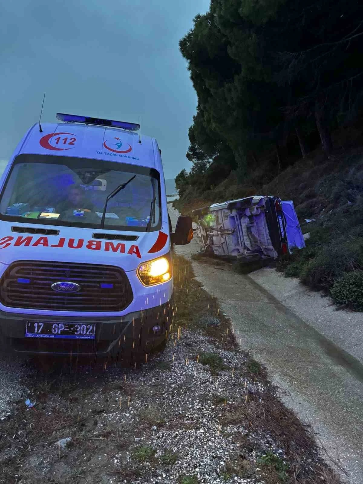 Çanakkale’de yoldan çıkarak yan yatan araçtaki 6 kişi yaralandı.