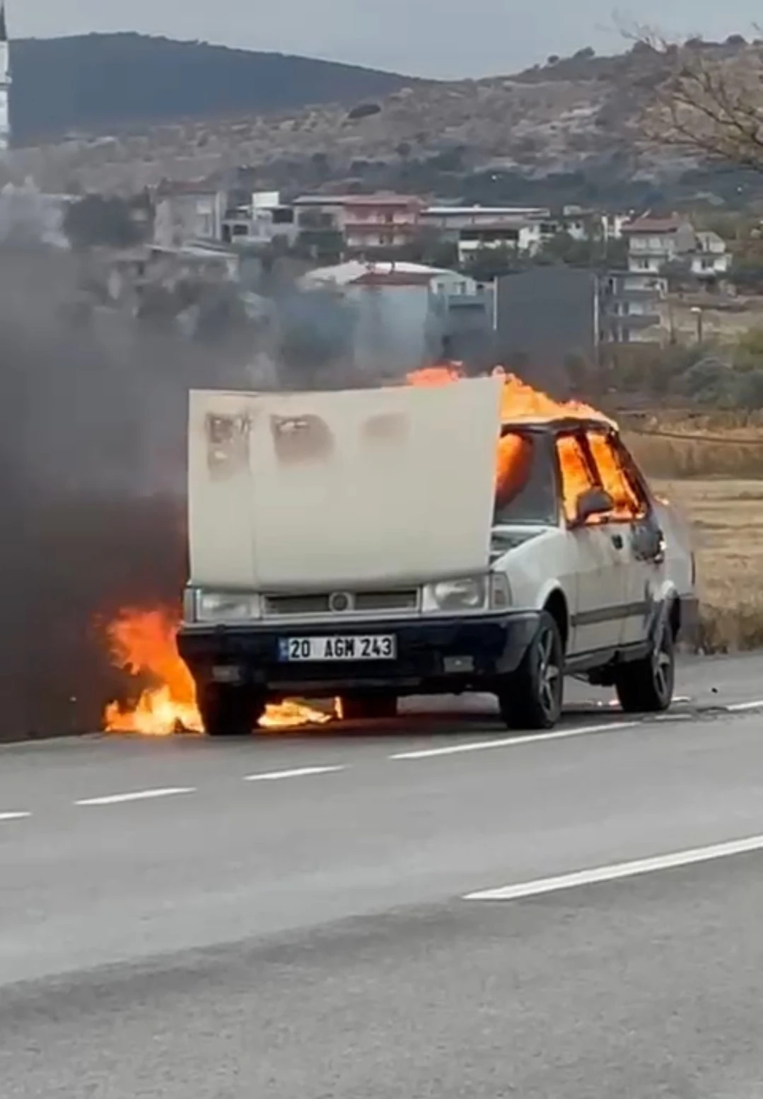 Olay, Ezine-Bayramiç karayolunda saat 12.00 sıralarında meydana geldi. Seyir halindeki 20 AGM 243 plakalı otomobil henüz bilinmeyen bir nedenle alev aldı. Sürücü, otomobili yol kenarına çekerek itfaiye ekiplerine haber verdi.