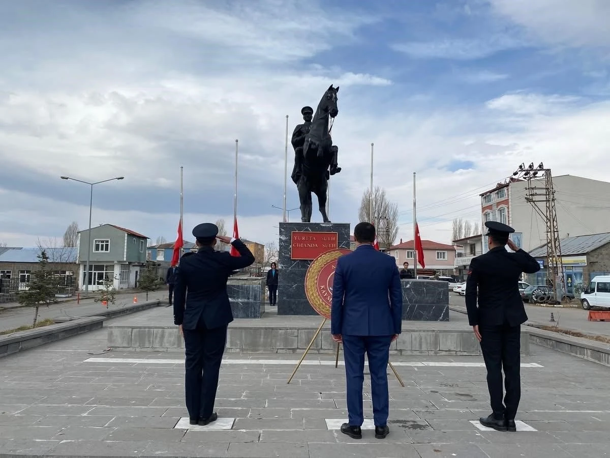 Kaymakam Muhammed Burak Akköz ve Belediye Başkanı Zeki Elma tarafından Cumhuriyet Meydanı’ndaki Atatürk Büstü’ne çelenk sunuldu. Tören, şehitler için saygı duruşu ve İstiklal Marşı’nın okunmasıyla devam etti.