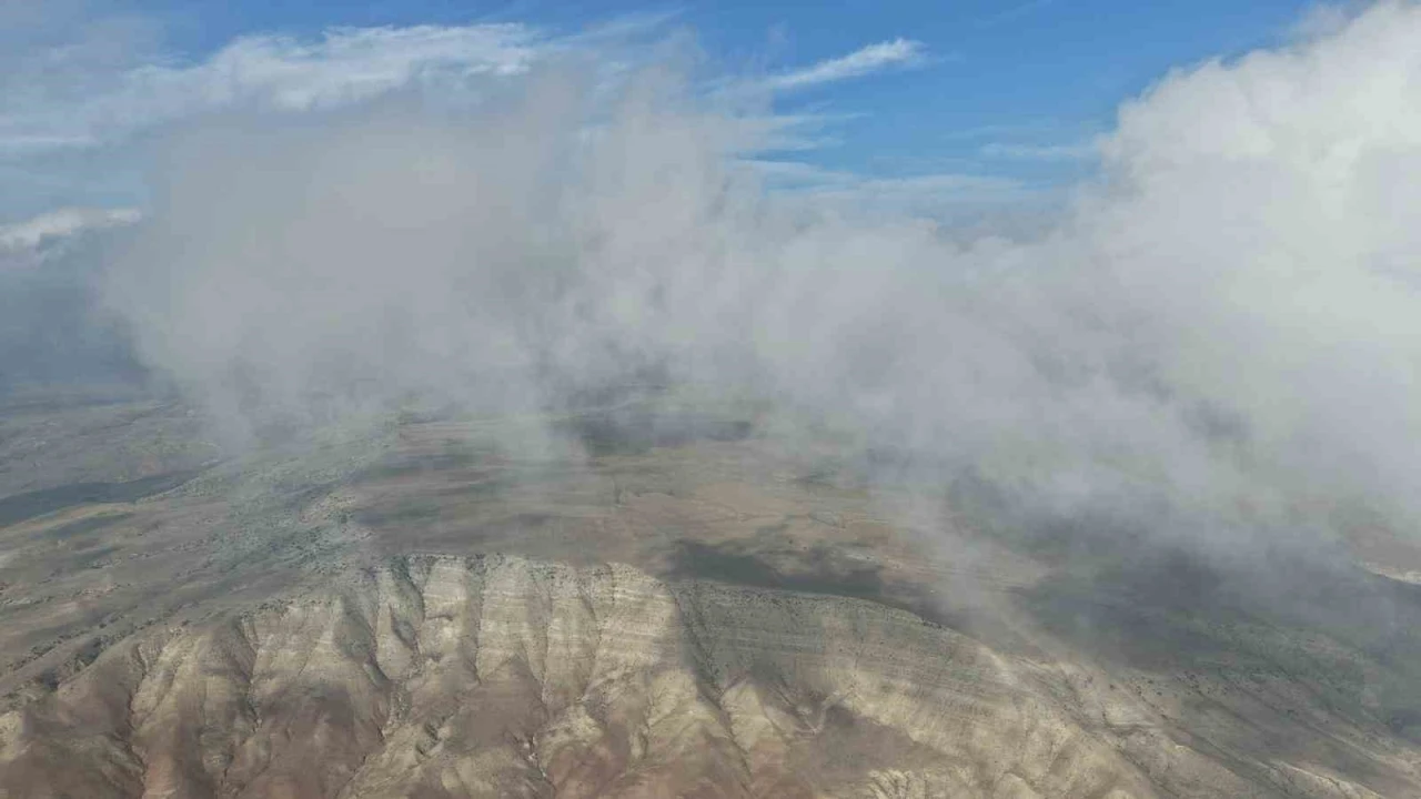 Çankırı’da etkili olan sis, güneşin doğuşuyla birlikte adeta görsel bir şölene dönüştü. Sis bulutlarının arasından yükselen güneş, beyaz örtüyle bütünleşerek büyüleyici bir atmosfer oluşturdu. Yaklaşık 500 metre yükseklikten şehri kaplayan sis bulutları havadan görüntülendi.