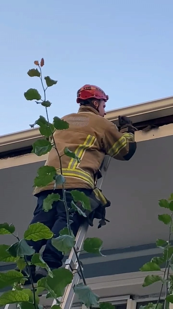 Bursa’nın İnegöl ilçesinde çatıya sıkışan ebabil kuşu, itfaiye ekiplerinin müdahalesiyle kurtarıldı.