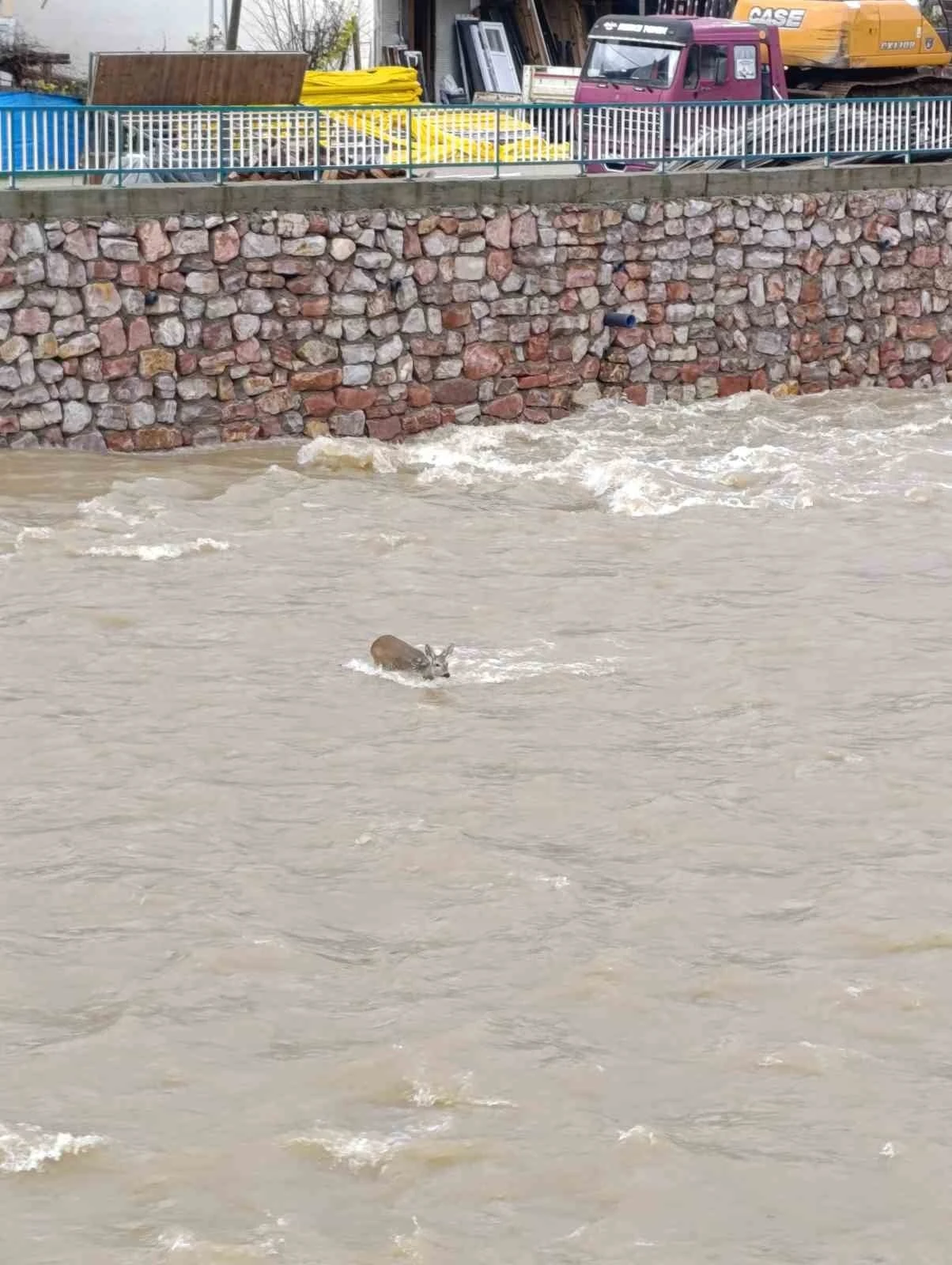 Yaralanmadığı belirlenen karaca, doğal yaşam alanına bırakıldı. Karacanın suda sürüklendiği anlar ise vatandaşlar tarafından cep telefonuyla görüntülendi.