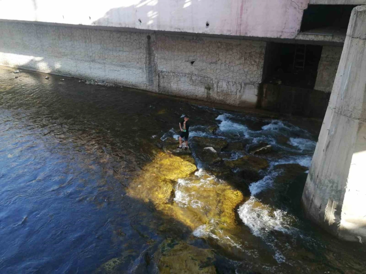 Gümüşhane’de Harşit Çayı’na düşen topunu almak isterken mahsur kalan 13 yaşındaki çocuk, itfaiye ekiplerince kurtarıldı.
