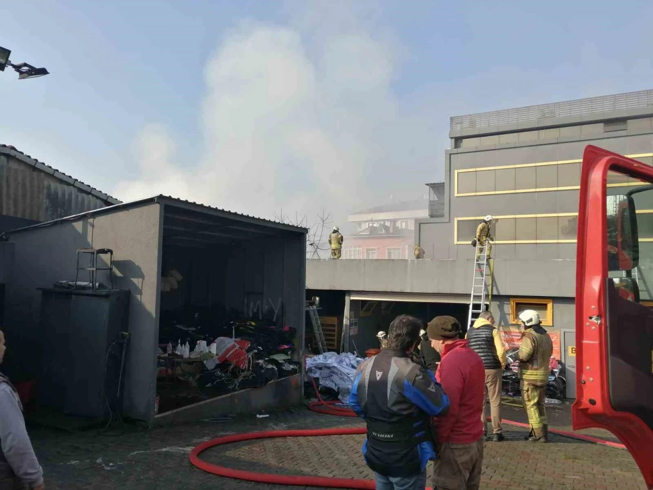 Yangına tanık olan mahalleli Hüseyin Akkuş, " 9 gibi çıktı yangın. İlk başta küçüktü, sanki meydan ateşi yakmışsın gibi alev çıktı. Ben kahvaltı yaparken camdan gördüm. Sonradan alevler yükseldi. Bugün tatil, iş yerinde kimsenin olduğunu zannetmiyorum olsa olsa güvenlik vardır. Burası lastik deposu çok büyük bir yer. Şu an söndürüldü gibi" dedi.