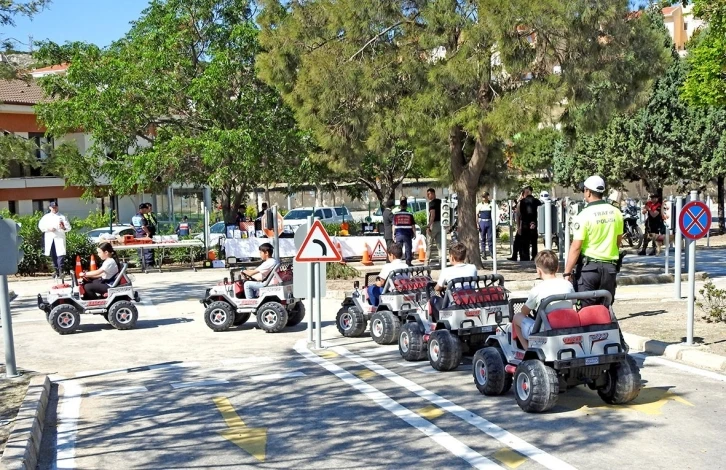 Çeşmeli ilkokul ve ortaokul öğrencilerine, Trafik Haftası nedeniyle Çeşme Belediyesi Trafik Eğitim Tesisleri’nde, İlçe Emniyet Müdürlüğü ve İlçe Jandarma Komutanlığı trafik ekipleri tarafından uygulamalı eğitim verildi.