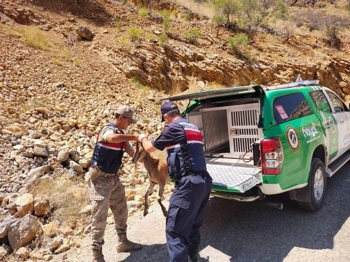 Erzincan İl Jandarma Komutanlığı Kemaliye İlçe Jandarma Komutanlığı sorumluluk bölgesinde bulunan Karanlık Kanyon’da, Çevre Doğa ve Hayvan Koruma Tim Komutanlığı tarafından yapılan önleyici devriye esnasında, bitkin halde bulunan yaban keçisinin beslenmesi ve kontrolü yapılarak yaralı olmadığının anlaşılması üzerine Karanlık Kanyon’da bulunduğu mevkide doğal yaşam alanına salındı.
