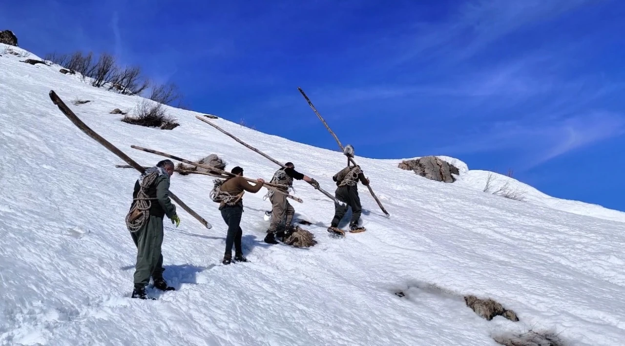 YEKDASDER Kulübü Başkan Yardımcısı Hakan Zanyar Aykut ve kulüp yöneticisi Rahmi İyinç, köylülerin zorlu kış sürecindeki anlarını kayıt altına aldılar. İlçenin Yeşiltaş köyü sakinleri, hayvanlarını beslemek için yaz aylarında 3 bin rakımlı dağlardan biçip biriktirdikleri ot yığınlarını karlı dağlardan kızak ve brandaya yükleyip 4 kilometrelik dik yamaçtan köylerine indiriyorlar. Arazilerinin sınırlı olması sebebiyle hayvanlara yem sağlamak için dağların yüksek kesimlerinde ot muhafaza ettiklerini belirten çiftçiler, kış aylarında tüm zorluklara rağmen ot indirme işlemini gerçekleştirdiklerini ifade ettiler.